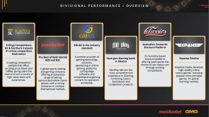 U sastavu grupacije GMGI, osim kompanije Meridianbet, posluju i kompanije Expanse Studios, Classics for a Cause, Rkings, Mexplay i GM-AG.
